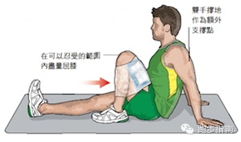 作法:将膝盖弯屈,冰敷袋置于受伤的肌肉,用弹性绷带或冰敷胶膜将大腿与小腿缠绕起来固定冰敷袋。冰敷时间约为20分钟。在受伤初期的48-72小时,依据受伤的严重程度,可以每1-2小时冰敷两次。
