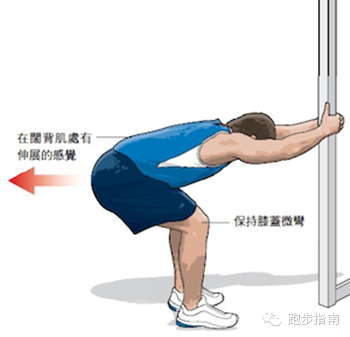 作法:站立于一能支撑体重的支撑物前,以双手抓握并将身体往后倾,屈曲膝部。双腿向地面施力,手臂向后拉。