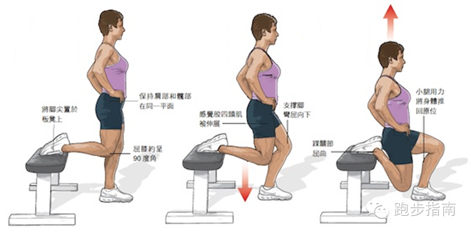 a. 站立并背对板凳或稳定的支撑物,单脚屈膝并置于支撑物上,保持身体直立和抬头。