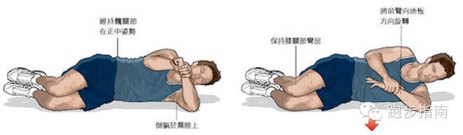 作法:身体左侧躺,头部以枕头支撑,左上臂向身体前方伸出与锁骨平行,手肘弯屈,左前臂向上指向天花板。b. 以右手握住左腕,缓慢的将左前臂向地板方向旋转。目标是要让左前臂可以平贴于地。在动作末端维持20-30秒,然后回到起始姿势,换边进行。