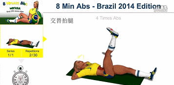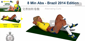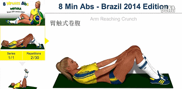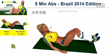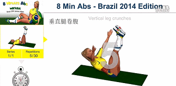 - 大家要是在家练的话,可以在优酷上找到这套“8分钟腹肌练习计划”的视频,跟着音乐做,效果会更好哦!